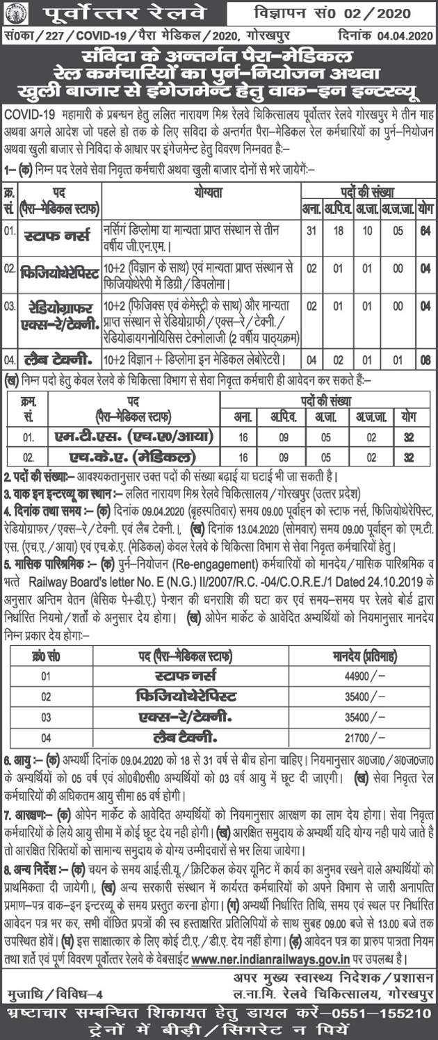 Eastern Railway - If any job requires physical activities like police jobs, fireman etc., its not suitable for pwbd candidates.
